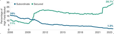 Figure 2: Over the years Comparison of Secured vs Subordinate debt securities